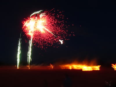 | この後、もちまきがあり 真冬の花火 そして火矢射式による点火と続いていきます。 満月と花火のコラボに 偶然にもついてしまった芝の火で 一気にテンションアーップ(*^。^*) 年に一度のお祭りに偶然居合わせて ラッキーでしたね〜!! |