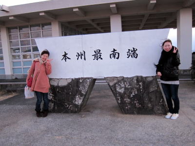 この日は偶然にも 串本の火祭りの日! ということで、参加してきました〜\(^o^)/ まずは初めて訪れる本州最南端の碑の前で 記念撮影♪ 実は、この笑顔からは想像できないくらいの寒さでしたぁ(>_<) |