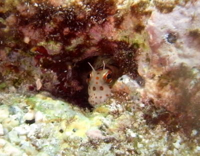 可愛いモンツキカエルウオちゃんも 岩の隙間からそーっとのぞいておりました\(^o^)/ |