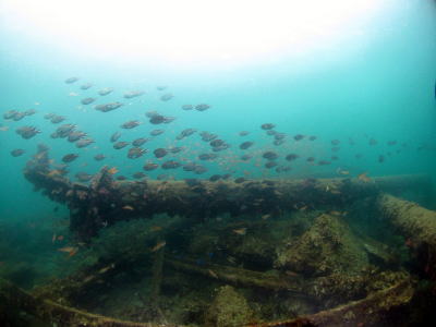 鉄塔跡にはスズメダイやネンブツダイの大群 アジの群れなどお魚がいっぱいでした\(^o^)/ |