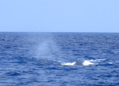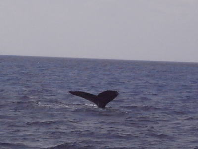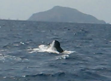 お母さんが潜る直前のテール! なんと2日間連続で同じ仲良しの親子クジラちゃんと 出会うことができました〜(^-^) |