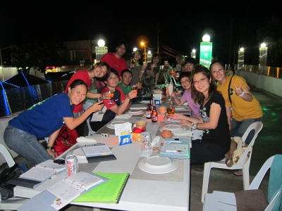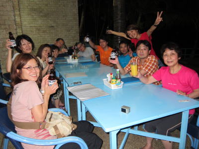 | 到着日はサービス併設のレストランで 晩御飯です! まずはやっぱりサンミゲルビールで乾杯(^○^) |