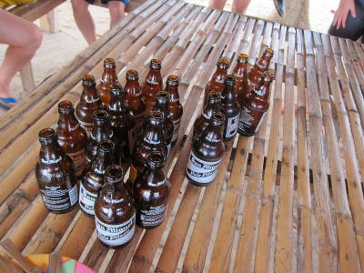 | 気がつけばこーんなに空き瓶が(^_-) まだ夜もありますからね〜♪ |