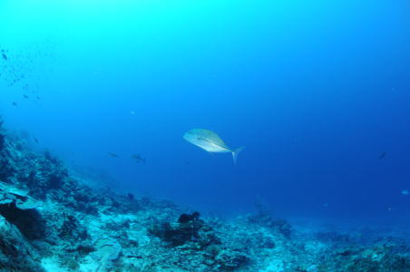 | この日は透明度も抜群でした(^_-) 青い青い海の中を 縦横無尽に駆け巡るカスミアジ かっこよかったですね〜! |
