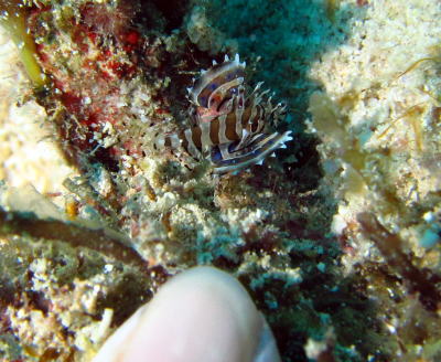 | 見てください、この小ささ(≧▽≦) シマヒメヤマノカミというミノカサゴの赤ちゃん めちゃくちゃ小さくて 可愛かったです〜♪ |