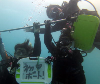 | ダイバーデビューしたてのお二人は、初めてのボートダイブにも挑戦!! 潜降できるかな〜??なんていう不安は エントリーしてすぐに吹き飛びましたね〜♪ 水中を自由自在に楽しんでいらっしゃいました(*^。^*) |