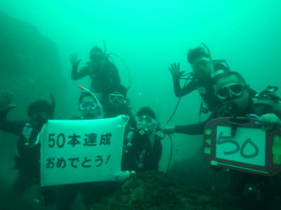 そして、50本記念を迎えられたのはTさん 台風のうねりと濁りの中でしたが 無事に迎えられてよかったですね(^-^) おめでとうございまーす! |