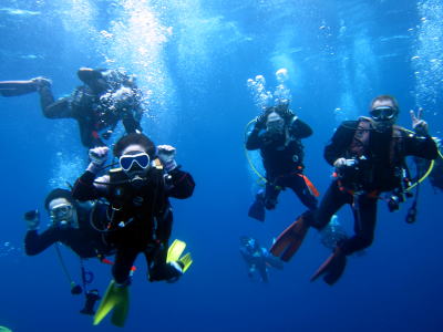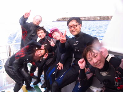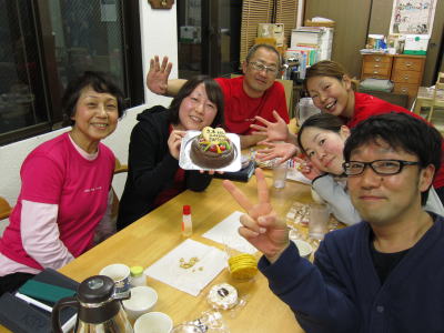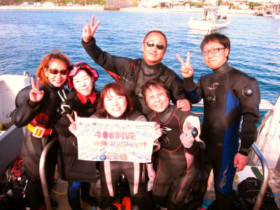 | 夜にはSちゃんの400本記念をお祝い〜\(^o^)/ いつもどんな海でも楽しそうに潜っているSちゃんは 本当にダイビング、大好きなんだなぁとしみじみ思いますっ! これからもいろーんな海を楽しみながら いーっぱい潜りにましょうね〜っ♪ |