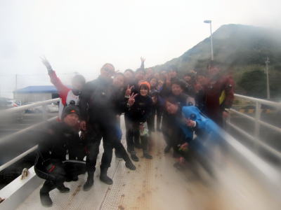 翌日は、曇り空ではありましたが 海は穏やかで 水温もあったか! レンズの曇でちょっと変な感じですが 皆でわいわい潜りに行きますよ〜(*^。^*) |