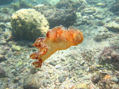 なにやらメリベウミウシが大発生〜(^○^) 変な生き物の代表格なんですが 昼間は岩の陰に隠れて 夜に行動しますよ! 変な生き物フリークの皆さん 会いたいなら今ですよっ!! |