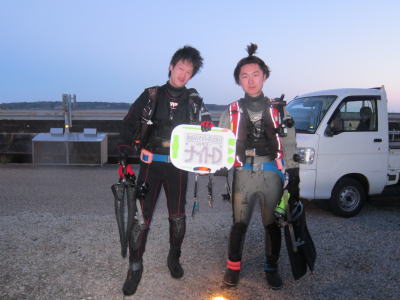 | 翌日は、日帰りで参加のお二人も合流〜っ! 初串本&初ドライスーツにチャレンジしました(*^。^*) 上手に潜られてましたよ♪ これから近場の海もどんどん潜りに来て下さいね〜!! |