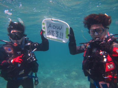 二日間でアドバンス講習終了のお二人! さぁ、次はファンダイビングにLET'S Goですよ〜\(^o^)/ |