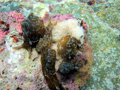 岩の裏には 山盛りのアマクサアメフラシが 皆で寄り添っていました! |