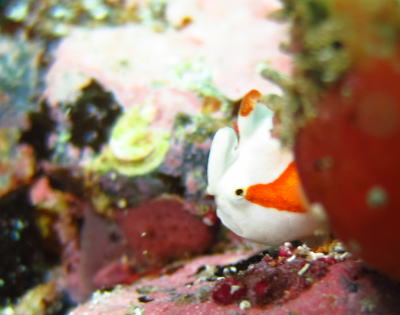 同じポイントにはシロクマちゃんもいました! ホヤにすっぽり隠れてしまい お顔だけ、なんとか覗けました(^○^) |