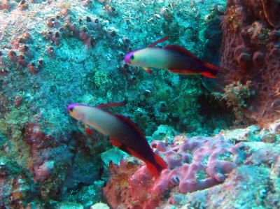 ハダカコケギンポのなわばり争いっ! 紫の子に完全に軍配はあがっていました〜! |