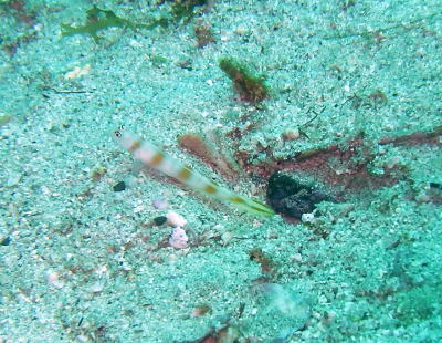 | 同じくKさん撮影のヤノダテハゼさん しっぽまで出ているからこそ ヤノさんとわかります! もうちょっと水温があがればどんどん砂地のハゼさんも でてくるでしょうね〜(*^。^*) |
