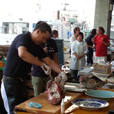 | マグロの解体ショーも開催されました〜! 立派なマグロちゃんがこれからさばかれていきます(^-^) |