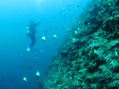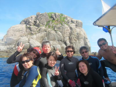 | 到着後に早速ダイビングへ! ちょっと透明度が下っていましたが スミレナガハナダイやカスミチョウチョウウオなど 沖縄らしい海でした! |