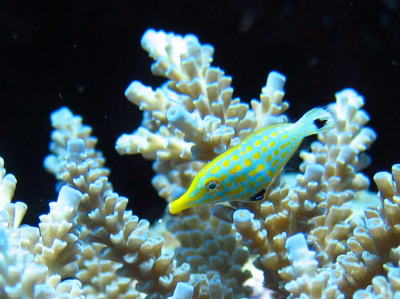 可愛いテングカワハギの赤ちゃんが サンゴの隙間をでたり入ったり〜(^-^) 可愛かったですよ♪ |