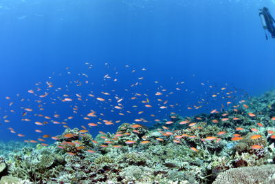 | サンゴにカラフルなお魚の群れが映えますね〜!! | ![]() |