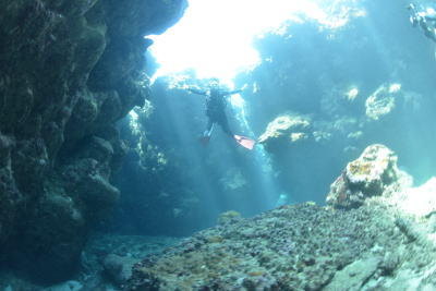 | 光差す水中がキラキラ〜っ☆ さんごいっぱいの海で これまでのダイビングの中で3本の指に入るほど 最高だったそうです(^○^)/ |