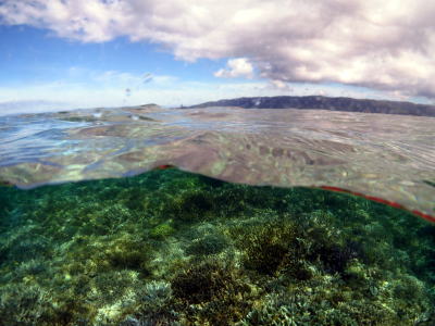 | 半水面だってこんなに素敵に♪ サンゴの広がりがよりきれいに写りますね! |