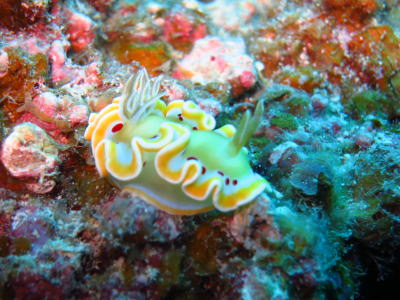 マクロも楽しい西表♪ こちらはヒラヒラがフリルのような アカテンイロウミウシさんです! |