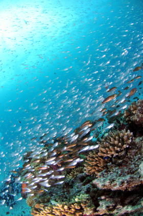 | 遊泳中のコバンザメも目の前で激写〜(^_-) 透明度がいいので 向こう側には船も見えていますね〜♪ |