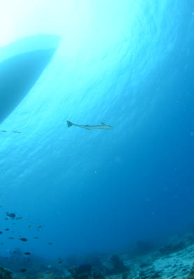| なんとコバンザメが遊泳中〜 なんていう不思議な光景にも出会いましたよ(^○^) 本当はあの人のお腹にくっつきたかったのかな?!(笑) |