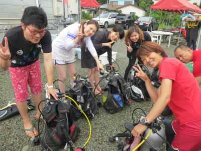 さらにこちらはAOWチームバディ♪ Uくんは、お気に入りのマイ器材の浸水式です(*^_^*) これで今日から快適ダイビングは約束されました〜! |