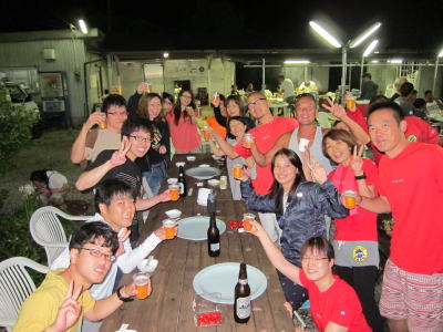| 夜はもちろんBBQ〜! いつも以上の大人数でワイワイ楽しく美味しく盛り上がりました(o^o^o) |