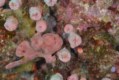 | こちらはピンクのオオモンカエルアンコウのお子様〜! だんだん大きくなってきて ちょっとふてぶてしい?!顔になってきてますね(^-^) |