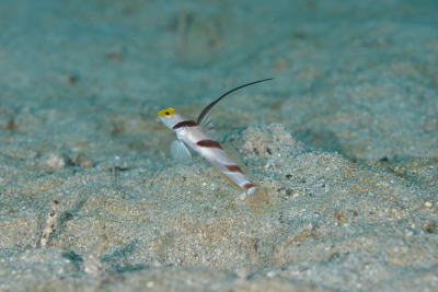 柏島、と言えば ハゼ団地〜っ! よーく目を凝らして探すと ネジリンボウやヒレナガネジリンボウの姿がっ! この子は全然ひっこまないいい子でした♪ |