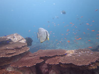 | Oさん リクエストのツバメウオも ちゃーんと出てきてくれました! 群れは見えなかったですが Oさんに会いに1匹戻ってきてくれましたね(^○^) |