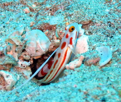 | ヤシャハゼだってこーんなにばっちりです(^○^) 紅白のエビさんも出て行こうかどうしようか 悩んでるのかな? |