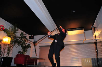 | 1次会も無事に終了し 2次会のカラオケに突入〜! スタートはもちろんこの方! 大熱唱〜っ\(^O^)/ |