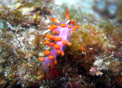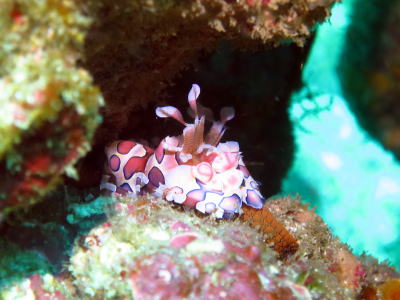 | だんだんウミウシの数も種類も増えてきました! こちらは、カラフルなルージュミノウミウシさんです(*^_^*) |