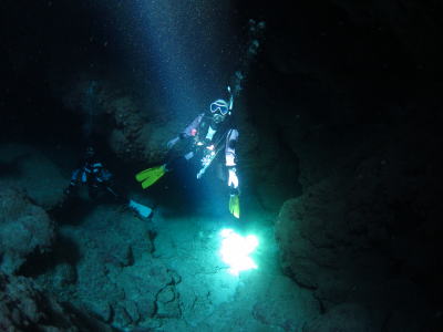 | 新田洞窟では、太陽の光が差し込み まるでスポットライト♪ 皆さん、こんな場所を見つけたら スポットライトを浴びるモデルさんみたいに 自然なポーズ取りに行ってくださいね〜(^○^) |