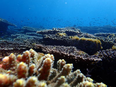 | そして、ラストもTG-3でワイド撮影のSボン様 後浜の浅場に広がるサンゴにすっかり魅了されたそうです(^-^) これからはマクロもいいけど ワイド写真にはまってしまいそうかな?! |
