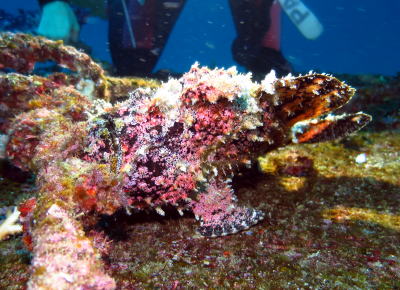 まずは一眼レフチームのベテランダイバー K池様 小さな小さなホヤカクレエビの背中の模様がここまで分かるのは やっぱり一眼レフパワーですね♪ |
