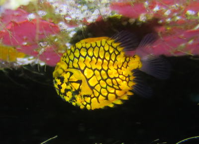 こちらは岩の隙間をウロチョロしているマツカサウオ! よーく見るとウロコの1枚1枚にトゲトゲがっ! これは肉眼ではなかなか分からない真実なのです(^○^) |