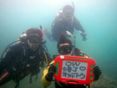 | 無事にOWコース認定となりました! Nっちゃんおめでとう(^○^) 次はきれいで穏やかな海で潜ろうね♪ |