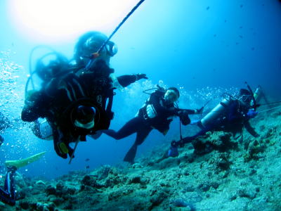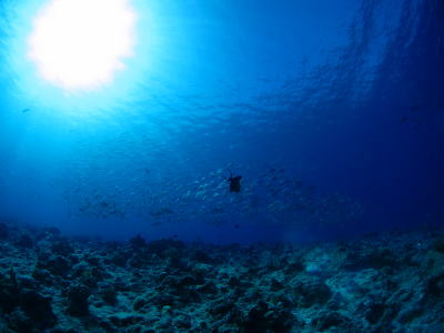 さて翌日〜♪ もちろん快晴でダイビングがスタート! チェックも兼ねてノンビリかめさんの多いポイントです(*^_^*) ラストは安全停止中に、なんとバラクーダの群れが登場! ドラマティックなスタートになりました! |