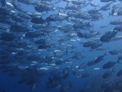 そして、言わずと知れた ギンガメアジの大群〜\(^O^)/ このあと、もの凄い流れにつかまって〜 |