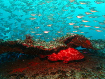 楽しいダイビングの後は、 串本ダイビング祭り 夜の部の始まり、始まり〜!! こちらはこの後で解体されることになるマグロさんっ! こーんなにでっかいんですよ〜\(^O^)/ |