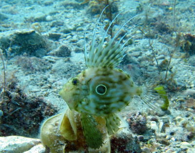 | マツカサウオとミノカサゴのコラボシーン(^-^) ふだん釣りをされたりするお二人 一番喜んでおられたのはこのミノカサゴでした! |