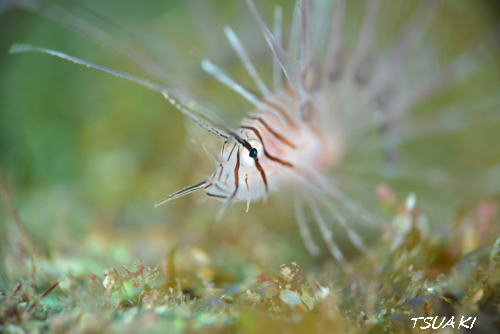 | ここしばらく居ついているハナミノカサゴの赤ちゃんも すこーしずつ成長してきてますね〜(^○^) 大人にはない透明感がなんとも言えません♪ |