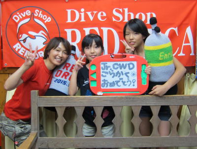 | 平日に夏休み真っ只中の中学生&小学生シスターズのOW講習へ行ってきました~! まずはプール講習からスタート! 水泳バリバリのお姉ちゃんとお姉ちゃんには負けないぞ!と意気込みの妹さん 時にはライバル、時には助け合いながら、スキルの練習を頑張ってやりました! プールでも、最後は一番深いところまで潜れましたね(*^_^*) あがってきたときに「楽しかったー♪」と言っていたお姉ちゃん、余裕でしたね! 午後からは初めての海での講習へ! プールで練習したことを海でも復習して、二人ともバッチリ上手にできました(^○^) 最初は重たい器材で泳ぐのも大変だったMちゃんも、だんだん上手にバランスとって泳げるように! 子供の吸収力、半端ないです(*^_^*) ![]() 水曜の夜はお泊りで、BBQを食べて21時には解散・おやすみなさーい! そして、翌朝も朝ごはんを食べて、海へGo!!! この日も穏やかな海でよかったね(^-^) ラスト2本頑張っていこう\(^O^)/ マスク脱着もドキドキだけど、上手にできましたね! ラストダイブは皆でファンダイブの練習~! 本当に最後は大人顔負けの上手な中性浮力で泳げるようになってきた二人! お姉ちゃんなんか、スイスイ先頭を泳いでいってましたね(´∀`) ![]() そして、二人とも無事に合格、ジュニアOWダイバーに認定です! おめでとうございます! これからもシスターズで仲良く楽しく遊びに来て下さいね~! ![]() |