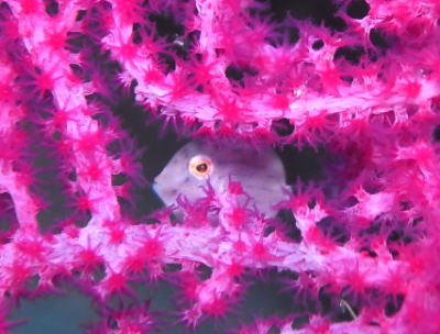 こちらはホタテツノハゼさんですが こちらも全然物怖じしませんっ! 大接近で頭のてっぺんの白いのがよく分かりますね! |