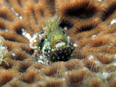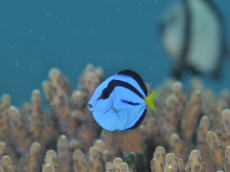 住崎で発見されたのは こちらもアイドル的存在のナンヨウハギのお子様です〜♪ サンゴの中に隠れてばっかりの恥ずかしがりやさんなので そーっと見てあげてくださいね! |